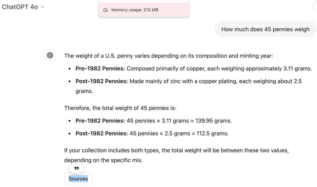 ChatGPT y Gemini pueden buscar información actualizada en la web con facilidad. Sin embargo, ChatGPT presenta mosaicos de artículos en la parte inferior de sus respuestas para una lectura adicional, tiene un excelente abastecimiento que facilita la vinculación de reclamos con evidencia, incluye imágenes en las respuestas cuando es relevante y, a menudo, proporciona más detalles en respuesta. Gemini no muestra nombres de fuente y títulos de artículos completos, e incluye mosaicos e imágenes de artículos solo cuando usa el modo AI de Google. El abastecimiento en este modo es aún menos robusto; Google relega las fuentes a los caretes que se pueden hacer clic que no resaltan las partes relevantes de su respuesta.