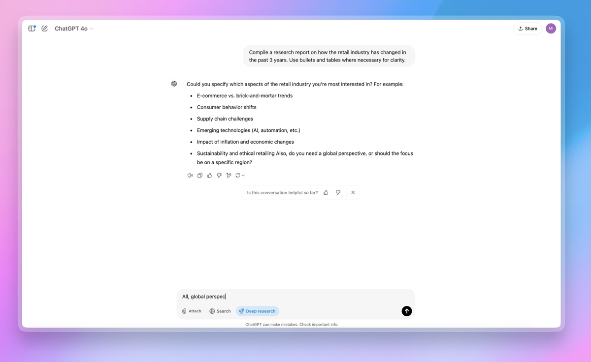 A diferencia de los chatbots de IA generales, que responden principalmente a las indicaciones directas, Operai Deep Research es capaz de razonamiento de varios pasos, realizando autónomas investigaciones profundas sobre temas intrincados.