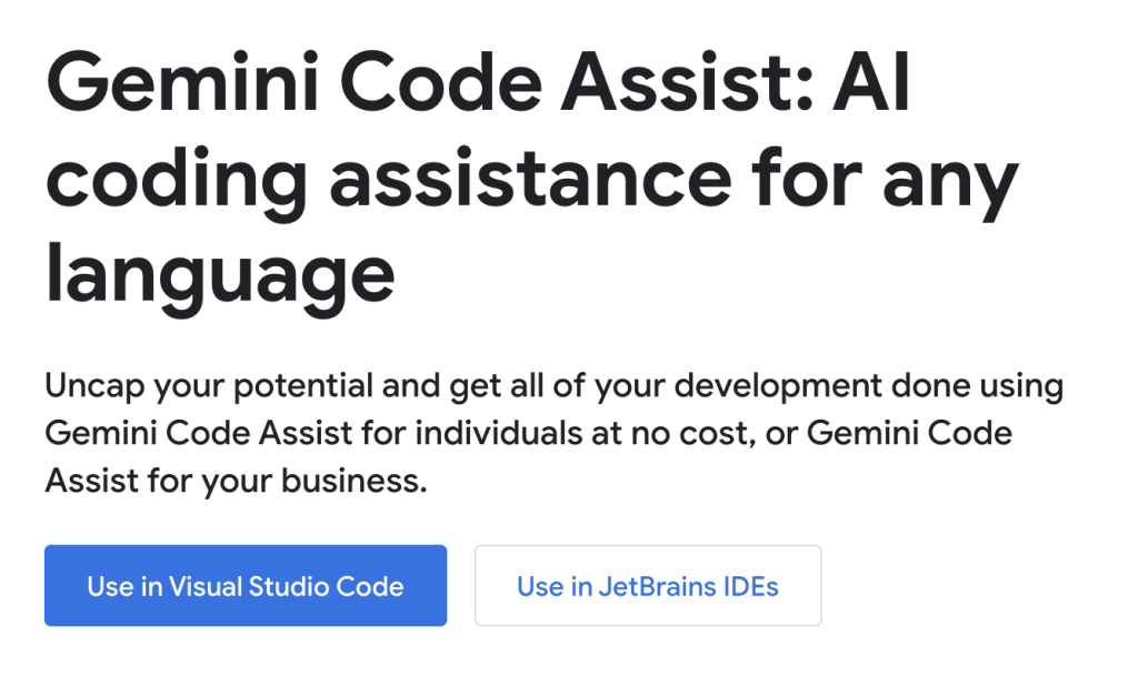 Gemini Code Assist afirma que admite más de 20 idiomas, lo que nuevamente es una oferta sólida a escala. Pero como Google no ofrece su propio IDE, es probable que dependan en muchos casos del código Visual Studio de Microsoft (VS Code). Estoy empezando a preguntarme si alternativas como JetBrains están recibiendo un impulso masivo por este motivo. Sin embargo, el valor predeterminado parece ser vs código: